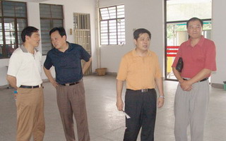 赵启满副校长与黄在宇总经理向志愿者询问情况 |