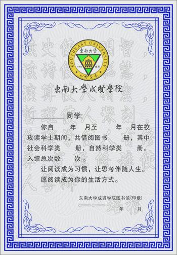“阅读证书”见证了毕业生四年在图书馆度过的阅读时光,见证了学生们课外的阅读、学习收获,这是一份来自于母校特殊的纪念品,也是学生四年内认真学习的最好见证。
