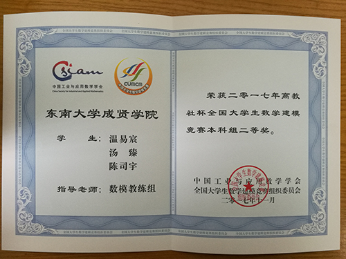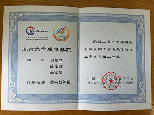 近日,全国大学生数学建模组委会公布了2017年全国大学生数学建模竞赛获奖名单,我校学生获得全国二等奖2项,省二等奖1项、三等奖1项的好成绩,在省内同类院校中首屈一指。