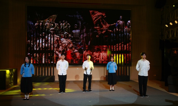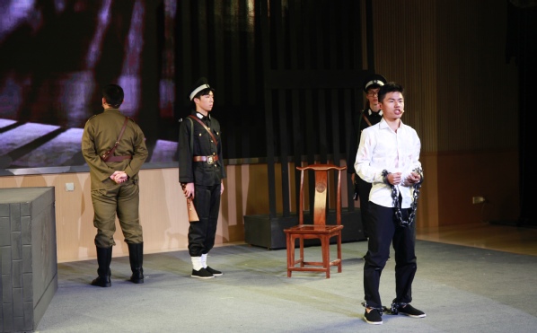 本次活动以雨花英烈精神为主题,通过深情回顾雨花英烈为国舍我的奋斗历程,展现中国共产党团结领导人民追梦圆梦的不懈实践和勇于担当的精神面貌。回顾百年峥嵘岁月,革命先辈崇高的理想信念、高尚的道德情操历经变迁仍熠熠生辉,“宁肯刑场高歌死,不愿苟且虚度活”,以心照中华,以命守信仰,他们如黑暗中闪亮的星,指引着越来越多的人前行。我校本次参演作品《时代的囚徒》以恽代英为创作原型,紧扣时代主题特色,塑造典型人物形象,展现雨花英烈精神。“浪迹江湖忆旧游,故人生死各千秋,已摈忧患寻常事,留得豪情作楚囚。”,暗无天日的监狱,连续不断的威逼利诱,恽代英虽然被囚却仍保持着革命者的豪情壮志,宁肯牺牲生命也要捍卫信仰,顽强不屈、英勇斗争的背后,怀揣着的是赤诚的忠心、不变的坚守,彰显了革命理想高于天的崇高信念,给后代青年留下了极为宝贵的精神财富。